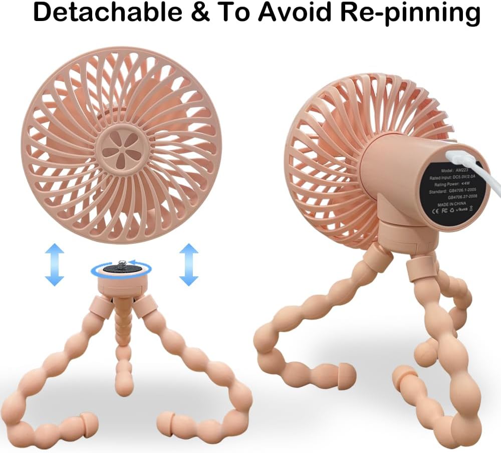 【Powerful Wind with Low Noise Portable Fan】: This baby stroller desktop fan features a brushless motor that provides high power and long-lasting durability. We have upgraded the fan blades and fan cover based on aerodynamics principles. As a result, our fan offers strong airflow while operating quietly, ensuring it won’t disturb you whether you’re working or sleeping.