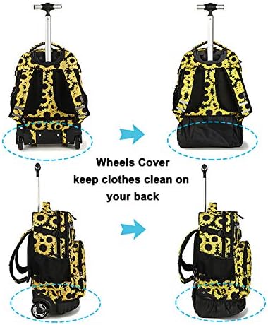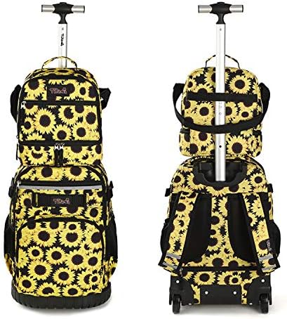 Rolling Backpack size: 18.92x 12.87x 8.27 inch; Lunch Bag size: 10x 7.5×10 inch. The backpack fit for kids over 4 year-old.