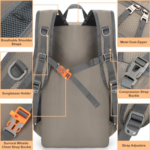Journey of Freedom – Our travel backpack comes with a chest buckle to secure its position and compression buckles to keep the travel backpack stable and maintain its shape, helping to maintain your body’s balance. There are mesh pockets on both sides of the hiking backpack for holding water bottles and umbrellas. The light hiking backpack have a sunglasses holder, and there are gear loops for camping and hiking, allowing you to free up your hands and enjoy your camping adventures.