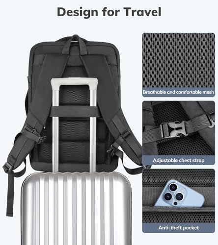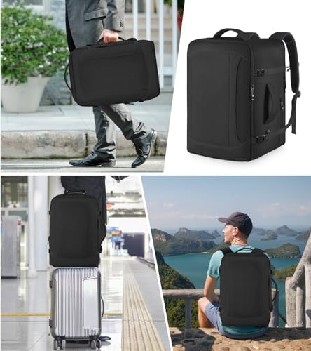 ✨【CONVENIENT & COMFORTABLE】:The top and sides of the large backpack for men have padded handles, and there is a luggage strap on the back to allow you to attach the travel laptop backpack to your suitcase when traveling, providing more versatility in the way you carry it. The comfortable and soft back cushion and shoulder strap design of the travel backpack can alleviate the pressure on your shoulders and neck to the greatest extent, making your journey easy and enjoyable!