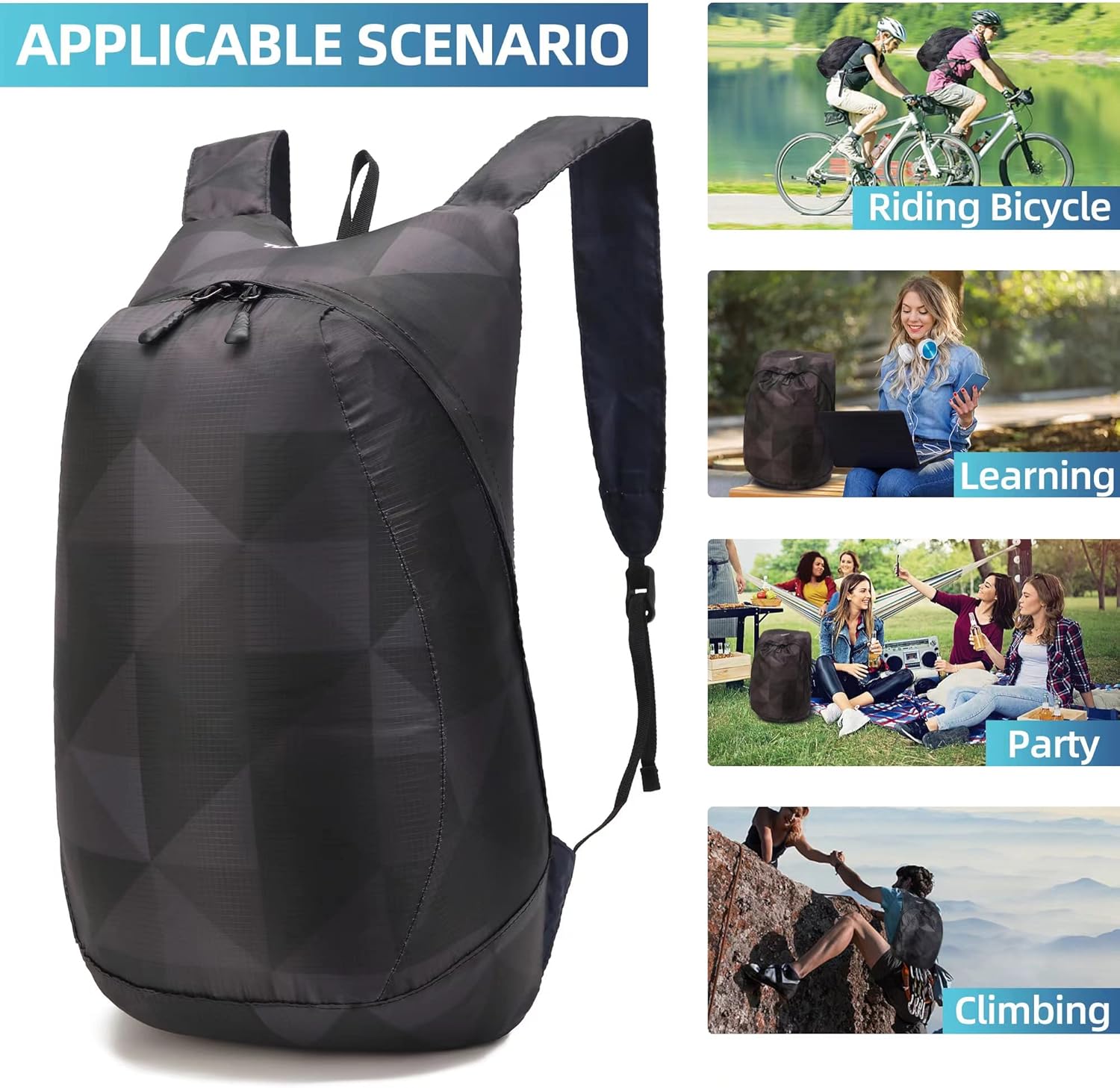 【ULTRA LIGHTWEIGHT & FOLDABLE】 Weighing less than a pound, the camping backpack weighs only 0.19lb, making your travel easy. The unfolded size of the backpack is 17.3 x 11.4 x 5.5in, and the folded size is 3.9 x 2.8 x 1.6in. When not in use, it can be stored in the pocket, which is easy to carry and does not take up space, making your travel more convenient.