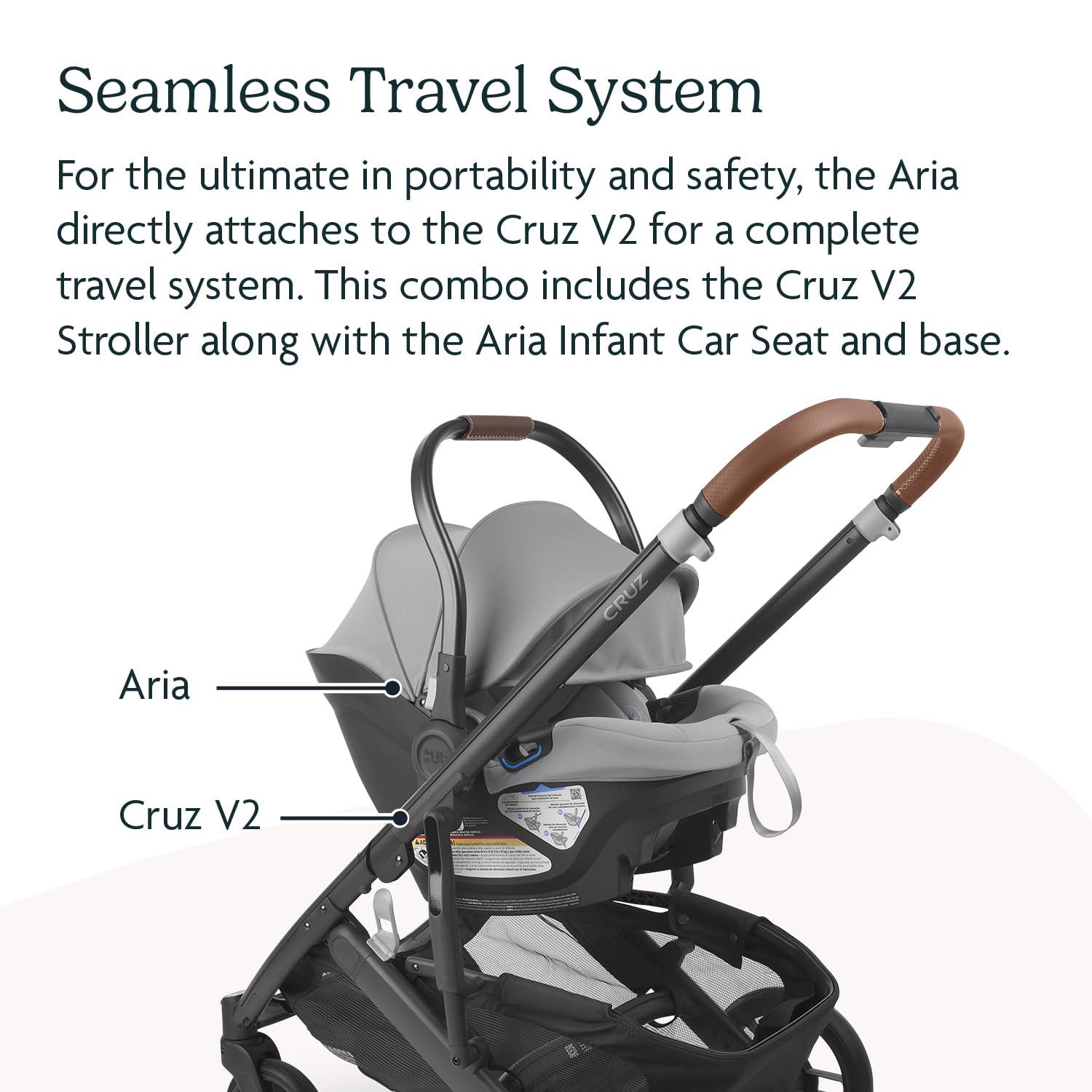STROLLER + CAR SEAT COMBO: For the ultimate in portability and safety, the Aria directly attaches to the Cruz V2 for a complete travel system. This combo includes the Cruz V2 Stroller, along with the Aria Infant Car Seat and base.