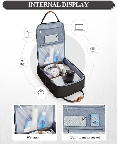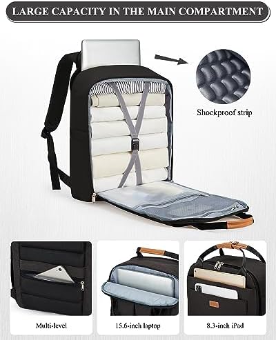 UPPACK Travel Backpack for Women Men Carry on Backpack for Airplanes Large Hiking Back Pack Black Personal Item Backpack Suitcase Overnight Backpack Laptop Backpack 15.6 Inch