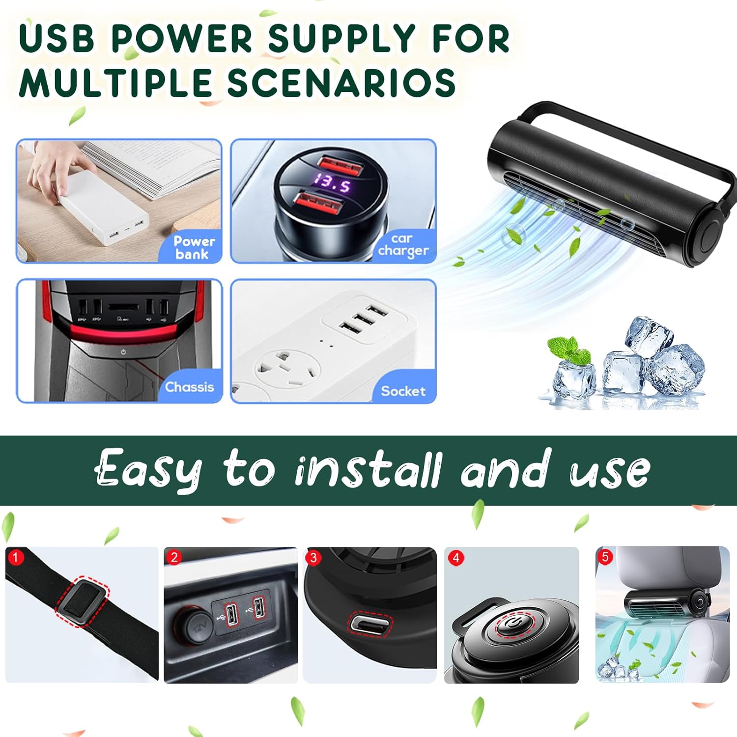 Easy installation:The car electric fan adopts a universal belt installation method, which can be easily fixed under the headrest of the seat, and can support trucks, off-road vehicles, SUV, RV, mini buses, and other vehicles.