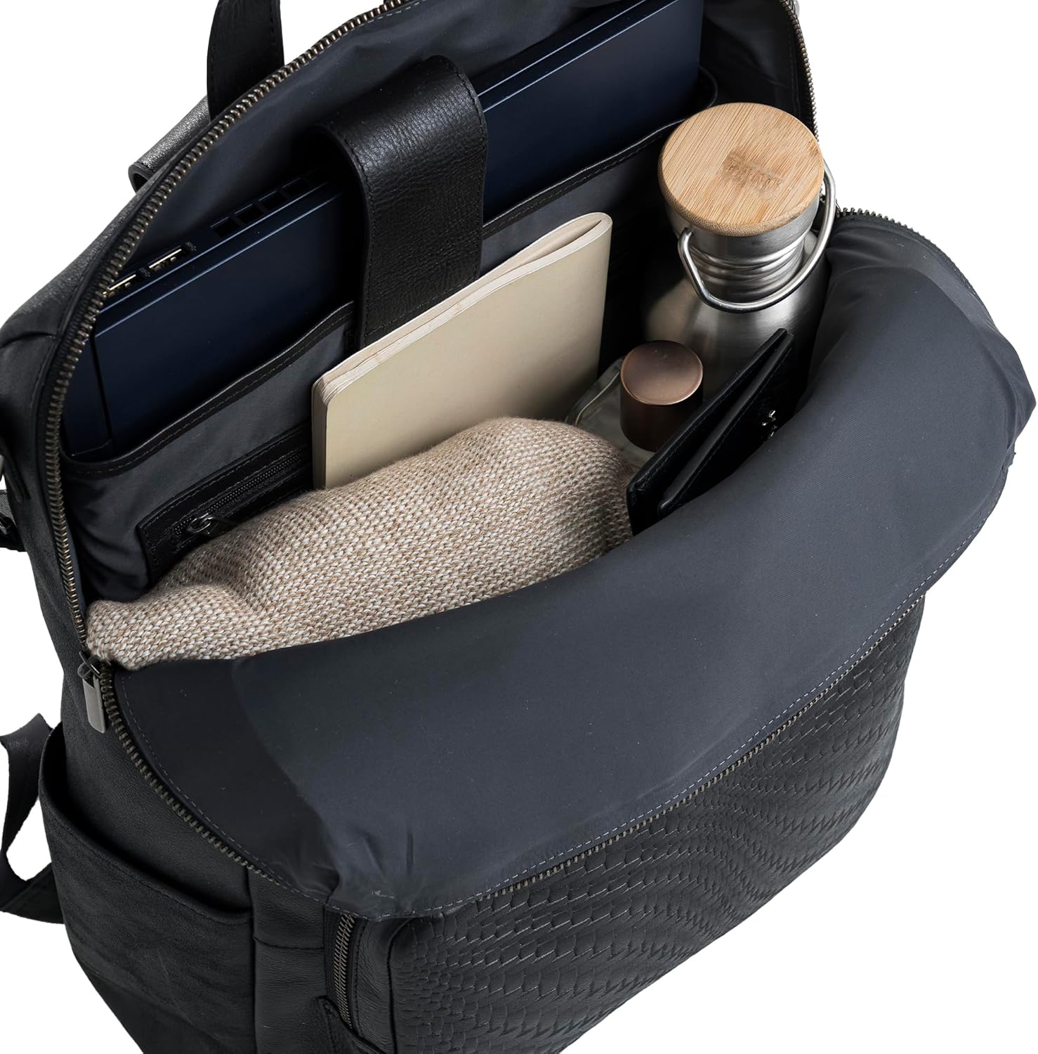 VINTAGE LOOK: Our leather backpack is a fusion of soft and embossed leather that creates a truly distinctive and stylish appearance. Crafted with an emphasis on functionality, its modern aesthetics make it the ideal companion for daily commutes. This handcrafted jewel combines practicality and style, offering you a statement accessory that effortlessly enhances your everyday look