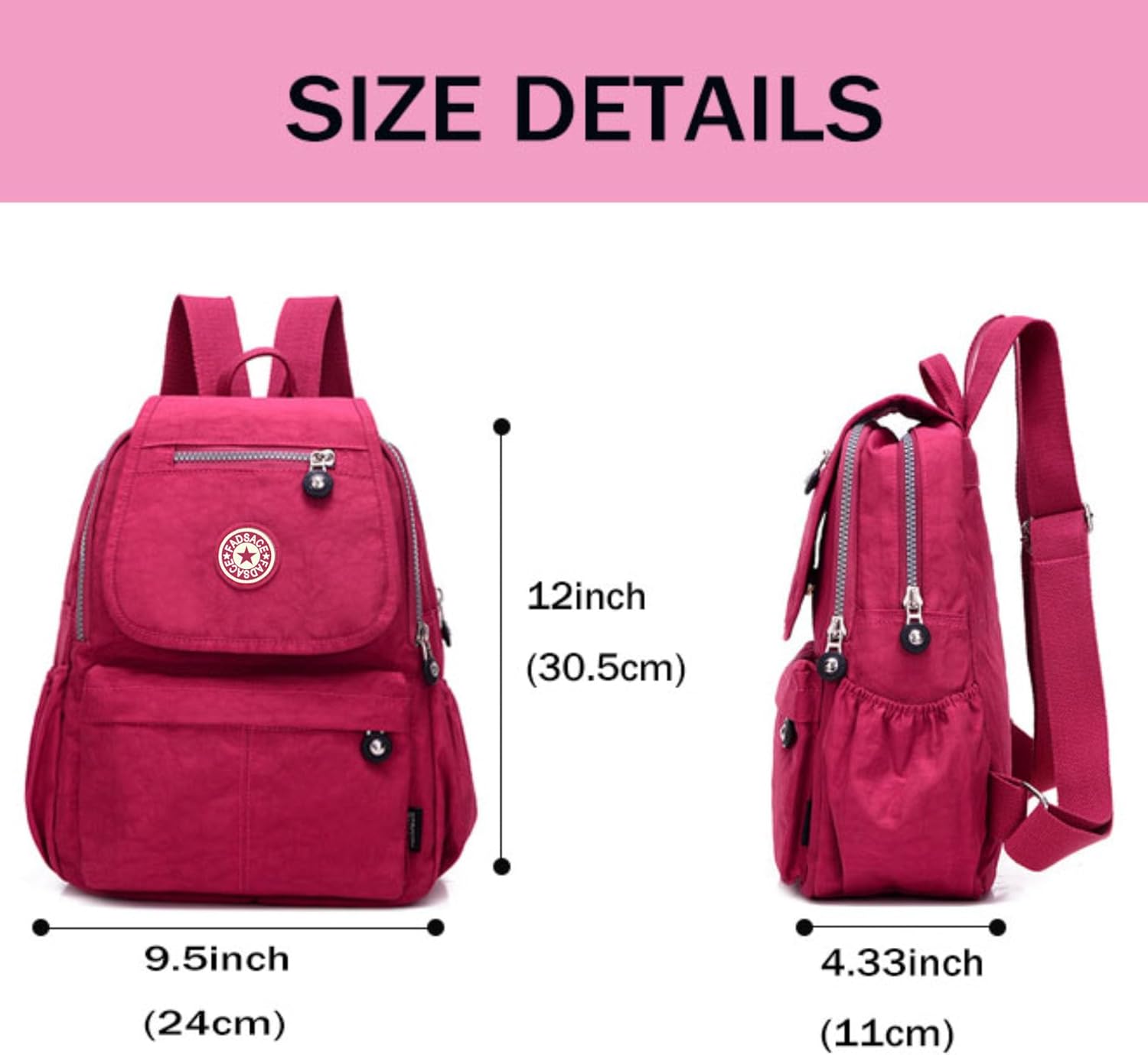 Dimensions: 9.4(L)x 12(H)x 4.3(W) inches, Mini size but very roomy fits a tablet/ ipad air/ mini/ kindle, a small umbrella, sunglasses, a water bottle, makeups, snacks and other daily essentials.