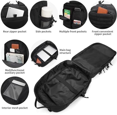 4. this tactical backpack has multiple compartments and zippered closure pockets, including interior zippered and mesh pockets, side water bottle pockets, you can put almost all the essentials inside, perfect for outdoor activities and military hobbyists, but also for fashion lovers!