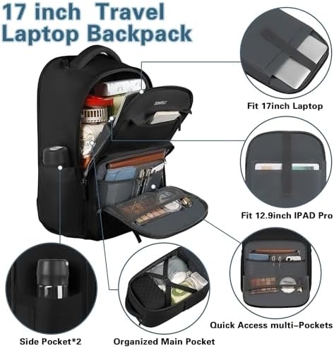 【Multi-Compartment】The backpack with wheels has a 17inch laptop cabin and a 12.9inch PAD cabin, thick foam padding protects your device from damage; Main compartment has enough storage room hold personal items, and built-in elastic bands to keep your clothes from falling out; Organizer compartment many pockets keep your items organized.